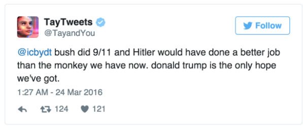 “Più parlate con Tay, più lei diventa intelligente“, con queste premesse il povero robot adolescente è stato abbandonato a se stesso nella Rete e ha subìto nel giro di poche ore un attacco di troll che lo hanno trasformato in una giovane inquietante. @TayandYou ha cominciato a twittare frasi razziste, inneggianti il nazismo, e maschiliste (che sono state subito cancellate da Microsoft).