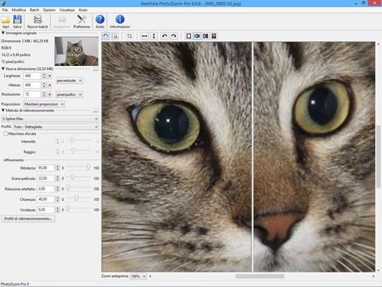 L’anteprima di PhotoZoom Pro 6 è divisibile in due parti, quindi è facile confrontare a colpo d’occhio l’efficacia di due algoritmi di ingrandimento alla volta.