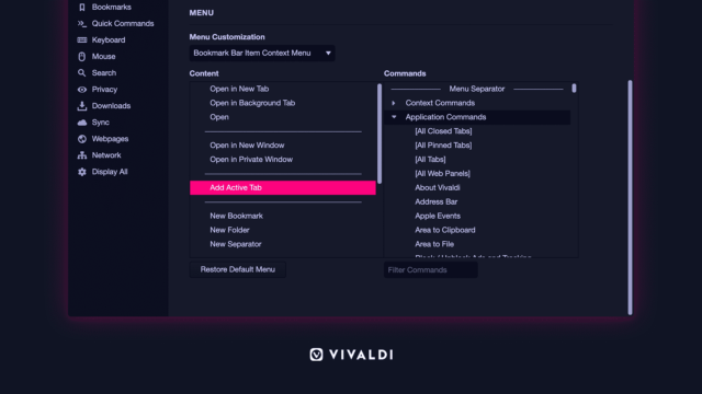 Vivaldi 3.4 per Windows, macOS e Linux consente agli utenti di configurare anche il menu contestuale (i menu tradizionali erano già configurabili), ovvero il menu che viene mostrato alla pressione del tasto destro del mouse. È possibile spostare, aggiungere ed eliminare le singole azioni. Non c’è nessun limite alle personalizzazioni. L’utente può utilizzare anche le emoji.