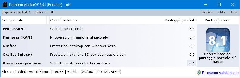 In realtà, anche su Windows 8 e Windows 10 lo Strumento di valutazione delle prestazioni (WinSAT) continua a effettuare i suoi test sullo sfondo, sebbene l’indice WEI non venga più comunicato in maniera diretta dalla pagina informativa dell’OS. Una mancanza che può risultare fastidiosa, e a cui è facile porre rimedio grazie a un’utility come ExperienceIndexOK.