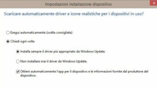 Aprite il desktop e richiamate Esplora risorse, con un clic sulla sua icona nella barra delle applicazioni o sfruttando la scorciatoia da tastiera Windows+E. Fate clic destro sulla voce Questo PC, nell’elenco ad albero di sinistra, e selezionate la voce Proprietà nel menu contestuale. Nella pagina delle opzioni di sistema fate clic sul collegamento Impostazioni di sistema avanzate, nell’elenco di sinistra, per raggiungere un’ulteriore finestra di dialogo. Passate alla scheda Hardware e fate clic sul pulsante Impostazioni installazione dispositivo, per aprire una nuova finestra di configurazione: qui si trova, finalmente, l’opzione cercata. Fate clic sull’impostazione Chiedi ogni volta: Windows mostrerà un’altra serie di impostazioni. Nella maggior parte dei casi si può mantenere la configurazione proposta, ma chi non vuole scaricare nessun driver suggerito da Microsoft può attivare l’opzione Non installare mai il driver da Windows Update. Non resta che confermare la scelta con un clic sul pulsante Salva modifiche e chiudere tutte le finestre di dialogo.
