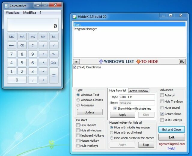 A chiunque lavori ogni giorno con il computer sarà  capitato di voler nascondere velocemente una finestra aperta: per esempio, se si deve accedere a informazioni personali o sensibili, come il referto di un esame oppure un estratto conto bancario, e ci si trova in un ambiente pubblico o di passaggio. HiddeX è una semplice e compatta utility gratuita, distribuita come software portable, che permette di farlo.