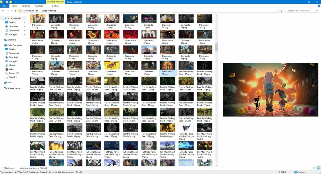 Il riquadro Anteprima è in grado di presentare una preview dei contenuti solo per quei file supportati dalla funzionalità, vale a dire tutti i tipi di immagine gestiti in maniera nativa da Explorer (PNG, JPEG e altri) le istantanee estrapolate dai file video, i listati in formato Batch, i documenti di testo (.txt), i file .xml e .ini.