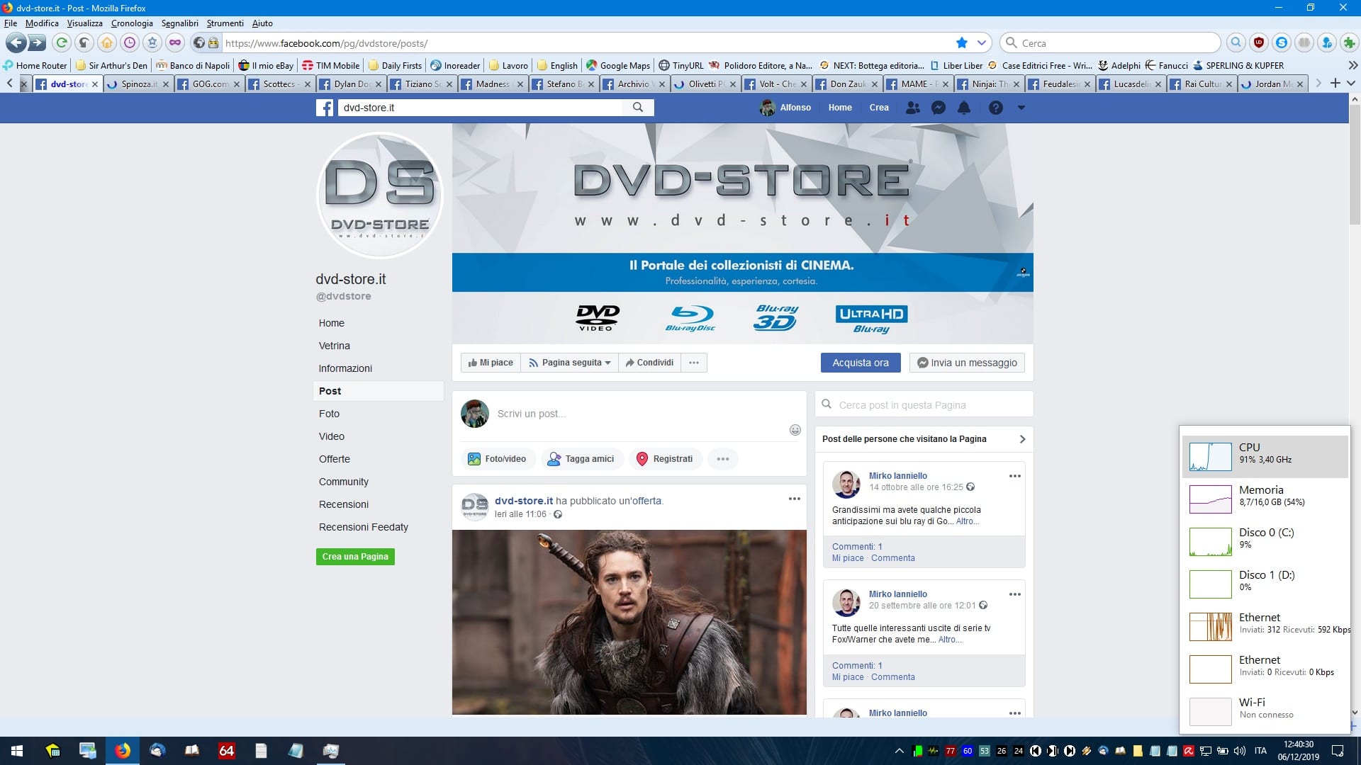 Ora, con il Task Manager così configurato, potremo lanciare un’applicazione, un benchmark o un task particolarmente oneroso per le risorse di sistema (come ad esempio l’apertura contemporanea di una ventina di pagine Facebook in Firefox Quantum presentata nello screenshot che segue) e tenere traccia in tempo reale di come si comporta l’hardware del nostro PC.
