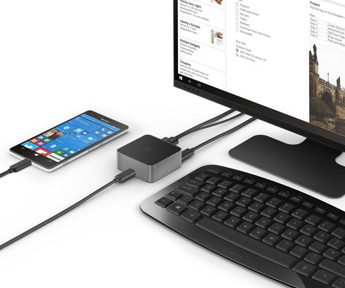 La dock esterna mette a disposizione due uscite video (Hdmi e DisplayPort), tre porte Usb 2.0 e una Usb-C utile anche per l’alimentatore. Collegando tastiera, mouse e monitor si ha a disposizione un desktop concettualmente simile a quello di Windows 10 per Pc, da cui lanciare app e lavorare comodamente. Nel frattempo lo smartphone continua a essere utilizzabile come al solito e nulla lascia trasparire che sta gestendo un secondo ambiente operativo. La tecnologia Continuum funziona ed è impressionante vederla in azione; l’uso di app come Office o la navigazione sul Web assumono un altro significato.