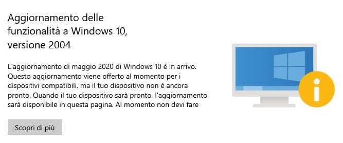 Avviso relativo ai problemi di compatibilità con Windows 10 2004.