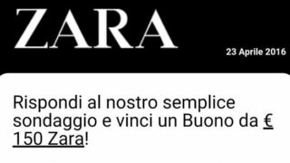 Sta circolando in questi giorni su WhatsApp un messaggio che finge di essere una iniziativa del colosso dei punti vendita di abbigliamento e accessori Zara. Il testo promette buoni acquisto da 150 euro rispondendo a un semplice sondaggio. In realtà sul sito si viene invitati a condividere ulteriormente il link a dieci amici oppure a 3 gruppi di WhatsApp e concluso il sondaggio si finisce su un sito di gossip che offre anche un servizio a pagamento. A rendere più verosimile il sondaggio ci sono delle finte recensioni soddisfatte di finti utenti che avrebbero ricevuto il buono. Zara non è coinvolta in nessun modo e non si riceverà mai il buono.