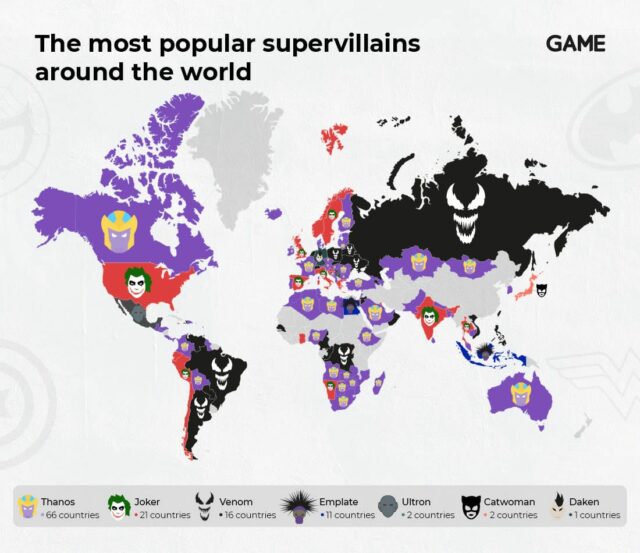 Tra i supercriminali degli universi Marvel e DC chi sono i preferiti in ogni paese nel mondo?