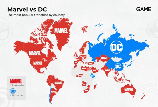 I paesi che preferiscono la Marvel includono Regno Unito, Australia, Colombia, Grecia e India. Anche l’Italia figura tra queste.