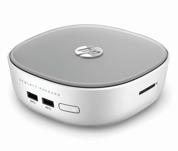 Linee molto arrotondate anche per il Pavilion Mini, ma in questo caso lo sviluppo è più orizzontale: si tratta infatti di un parallelepipedo a base quadrata (circa 14,5 cm per lato) con altezza di 5,2 cm. Anche in questo caso i processori sono Intel di ultima generazione (disponibili diverse versioni, con Cpu fino al Core i5), due moduli di memoria Ddr 3 Sodimm (supportati fino a 16 GB) e un disco da 2,5″ Sata (fino a 1 TB di spazio).