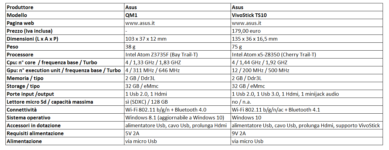 Ecco, nel dettaglio, le differenze tra il VivoStick e il QM1: