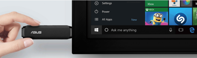 Non cambia, invece, nella soluzione Asus, la parte memoria (sempre 2 GB di Ddr3L) e storage (32 GB di tipo eMmc). Dal punto di vista delle connessioni di input/output, il VivoStick integra adesso due porte Usb “standard” – una di tipo 2.0 e una 3.0 – e un minijack audio, oltre alla porta micro Usb (riservata però all’alimentazione) e all’uscita Hdmi. Migliorata anche la connettività di rete, che vede adesso un Wi-Fi 802.11ac e un Bluetooth 4.1. È invece assente, purtroppo, lo slot per la memoria micro Sd. In dotazione, oltre all’alimentatore e a una piccola prolunga Hdmi, Asus ha inserito il VivoStick Holder, un supporto utile per collocare il dispositivo sulla cornice del monitor o della Tv.