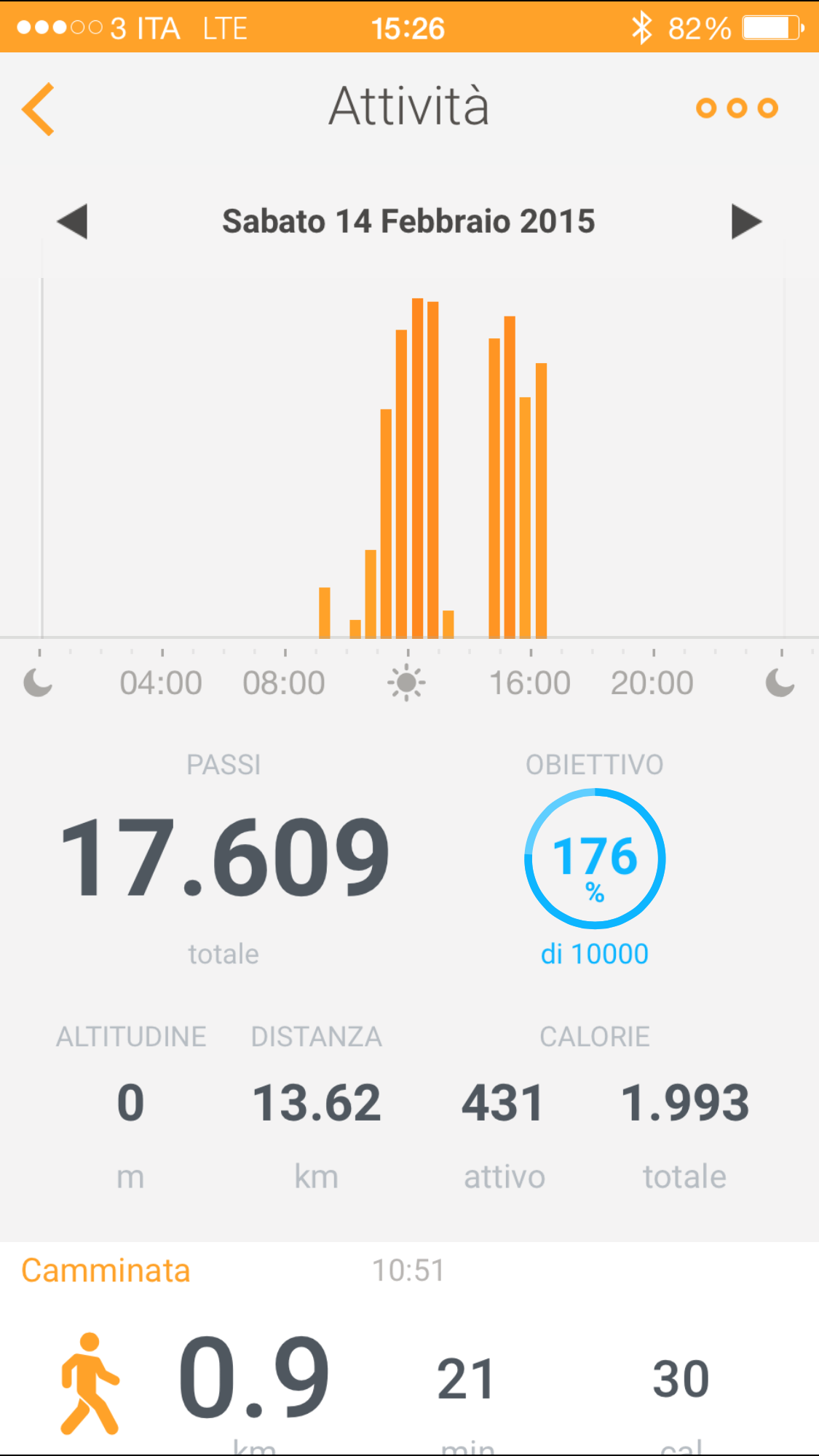 Molto precisa è la rilevazione dell’attività fisica. Il Pop si rende immediatamente conto se stiamo camminando (anche con passo veloce) o se stiamo correndo e lo evidenzia nei dati dell’app. Dalle mie prove la precisione del tracciamento è migliore di quella del Fitbit Charge (che è un po’ generoso nel rilevamento). Torno anche qui a ribadire che non stiamo parlando della precisione assoluta, ottenibile solo con un prodotto che abbia a bordo un rilevatore Gps, a scapito però dell’autonomia (per esempio, pensate che il Garmin vìvoactive offre tre settimane di autonomia nell’uso normale che scendono a sole 10 ore quando si attiva il Gps).