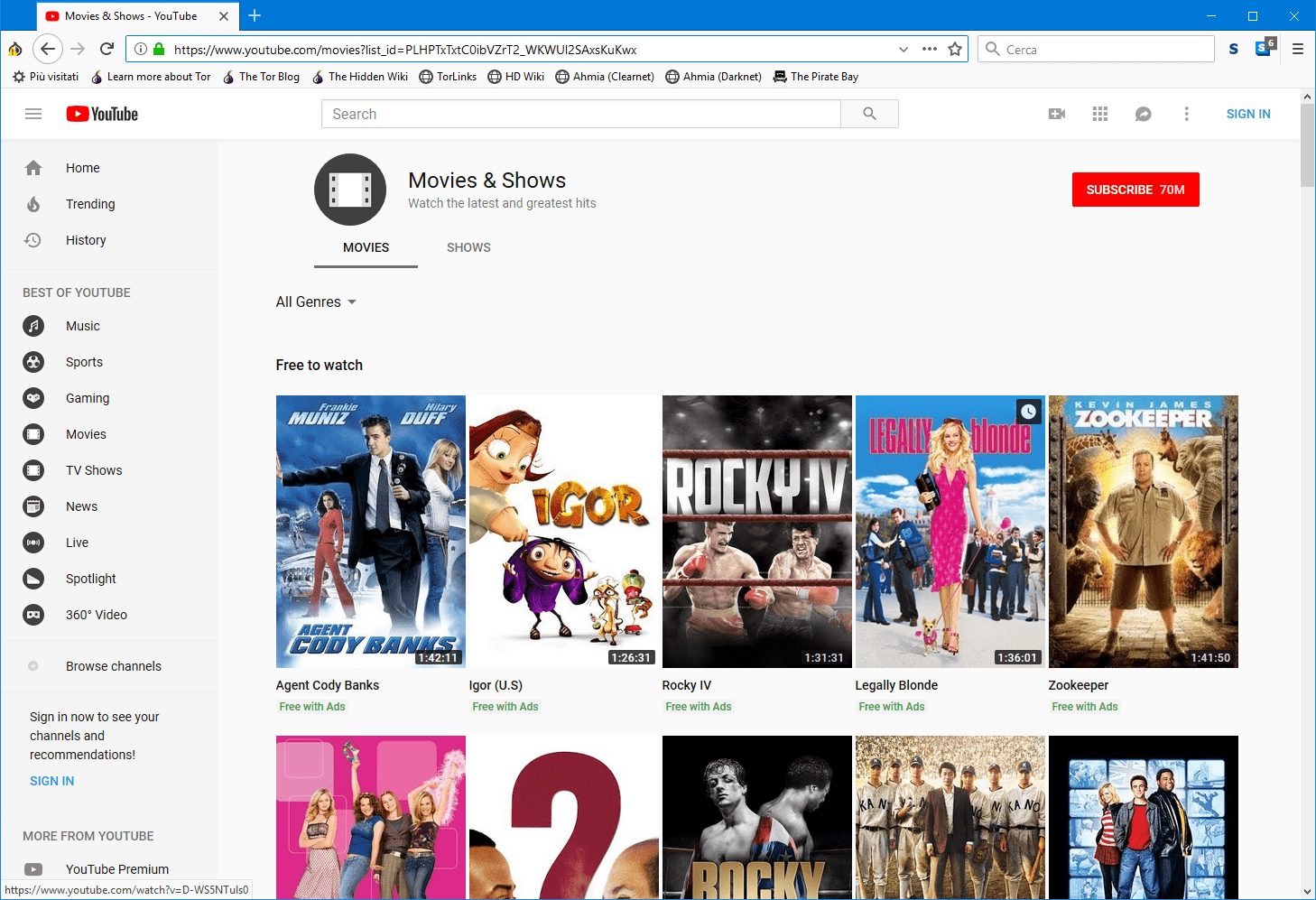 La nuova sezione per la visione gratuita di YouTube include al momento circa un centinaio di film, con un’offerta piuttosto diversificata che comprende classici del cinema (Rocky da I a V, Terminator) e titoli decisamente meno blasonati se non addirittura sconosciuti al grande pubblico. La dicitura “Free with Ads” posta al di sotto di ogni locandina non lascia adito a dubbi sulla natura dell’offerta, i film sono disponibili su tutti i dispositivi compatibili con lo streaming della piattaforma e sono accessibili – lo ricordiamo ancora – solo agli utenti residenti negli States o tramite l’utilizzo di una VPN.